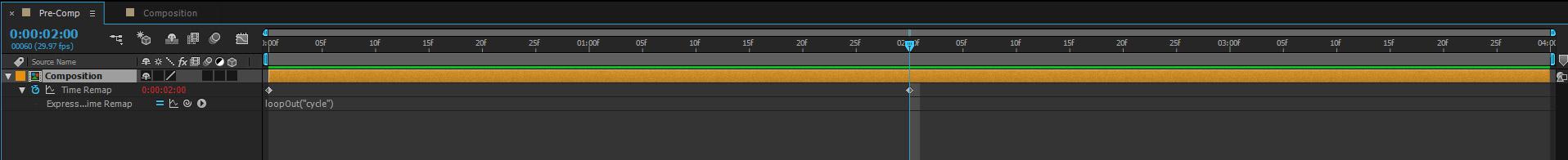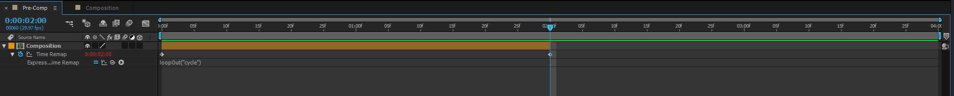 “timeRemap” رو با این عبارت لوپ جایگزین کنین: loopOut("cycle")