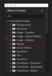 توی پنجره Effects & Presets، مجموعهای از پریست های متحرک (Animation Presets) وجود دارن که ممکنه با همه اونا آشنا نباشین. توی این مقاله همون طور که گفتیم میخوایم پریست Shapes رو بررسی کنیم. برای استفاده از پریست Shapes باید: