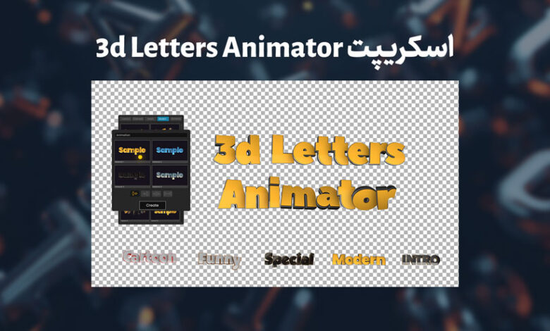 3D Letters Animator این یه اسکریپت برای After Effects هست که هدفش ساخت سریع و راحت عنوانها و متنهای سهبعدی با انیمیشنهای آماده حرفبهحرف و سبکهای مواد (materials) از پیش تعریفشدهست. این ابزار یه مجموعه از پریستهای حرکتی (بیش از ۱۲۰ انیمیشن) و چند ماده آماده برای ظاهر سهبعدی متن در اختیار کاربر میذاره و امکان تنظیم نور، رنگ، انعکاس، تاخیر نمایش حروف و جهت حرکت رو هم فراهم میکنه. بعضی از گزینهها به پلاگین Element 3D وابستهان و باهاش میتونید خروجیهای خیلی جذاب برای عنوانهای تبلیغاتی یا موشنگرافیکهای کوتاه بسازید. (اطلاعات محصول و مشخصات از صفحه محصول در aescripts گرفته شده).