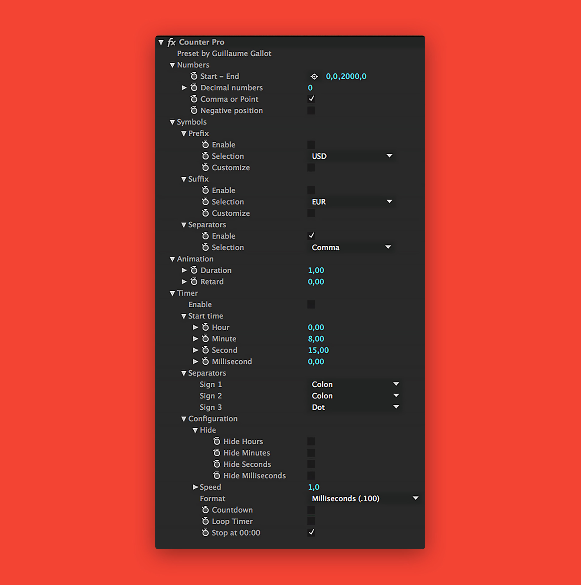 تو روش سنتی، برای ساخت شمارنده باید از اکسپرشنها (مثل time*rate) استفاده میکردید و بعد هم فرمت اعداد، اعشار و جداکنندهها رو دستی تنظیم میکردید. این کار نه تنها وقتگیر بود، بلکه احتمال داشت اعداد اشتباه نشون داده بشن یا پرش داشته باشن. اما با Counter Pro، فقط با چند کلیک میتونید خروجی استاندارد و بدون خطا داشته باشید.