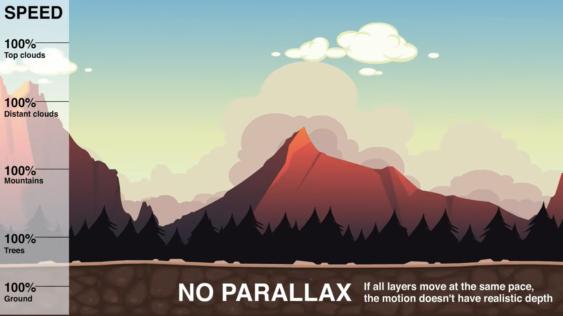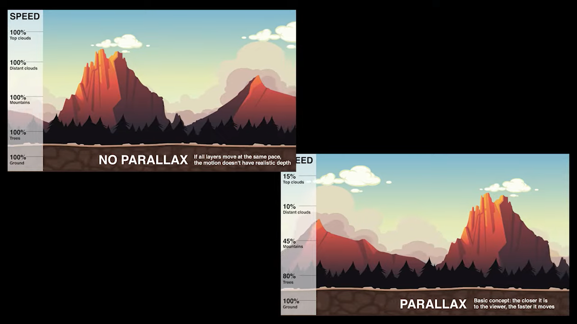 یعنی ما میایم با «اختلاف سرعت حرکت لایهها» کاری میکنیم که مغز فکر کنه این صحنه عمق داره.