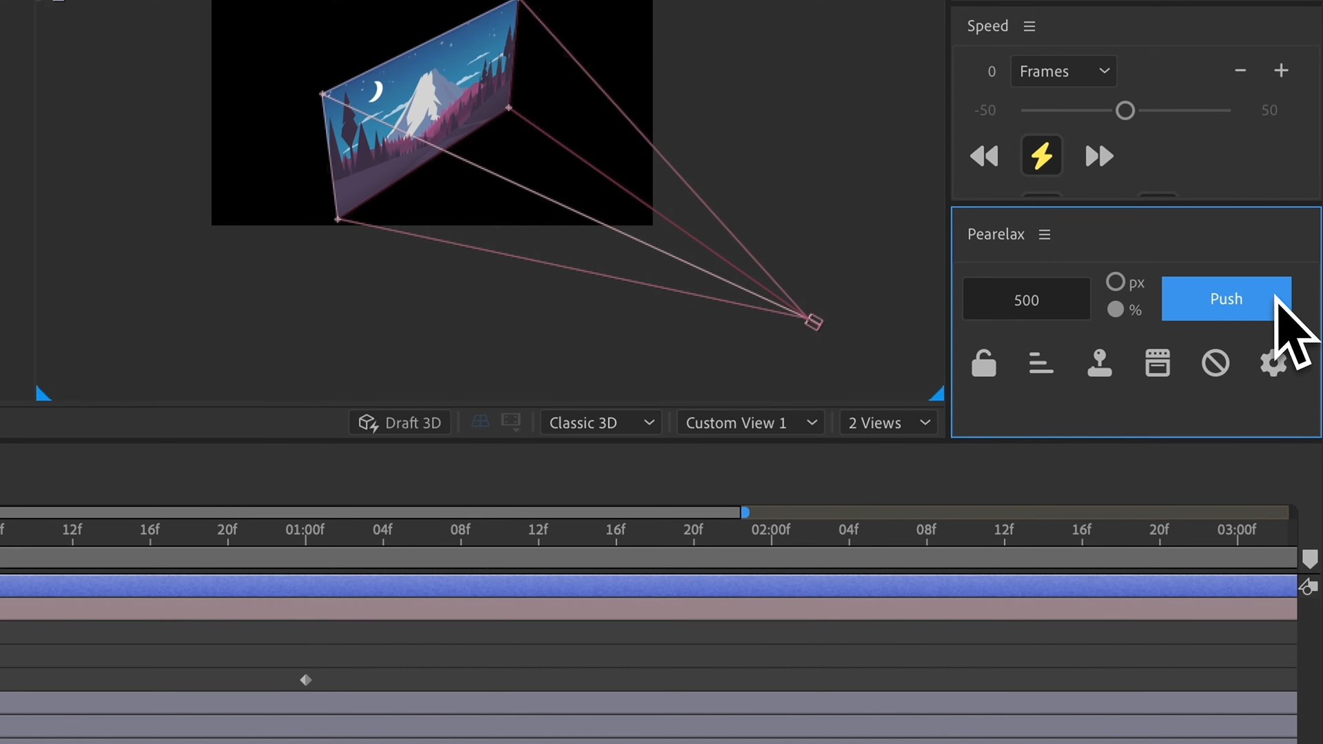 وقتی لایهها رو «3D Layer» میکنی، هر کدومش تبدیل میشن به یه صفحه توی فضای سهبعدی.