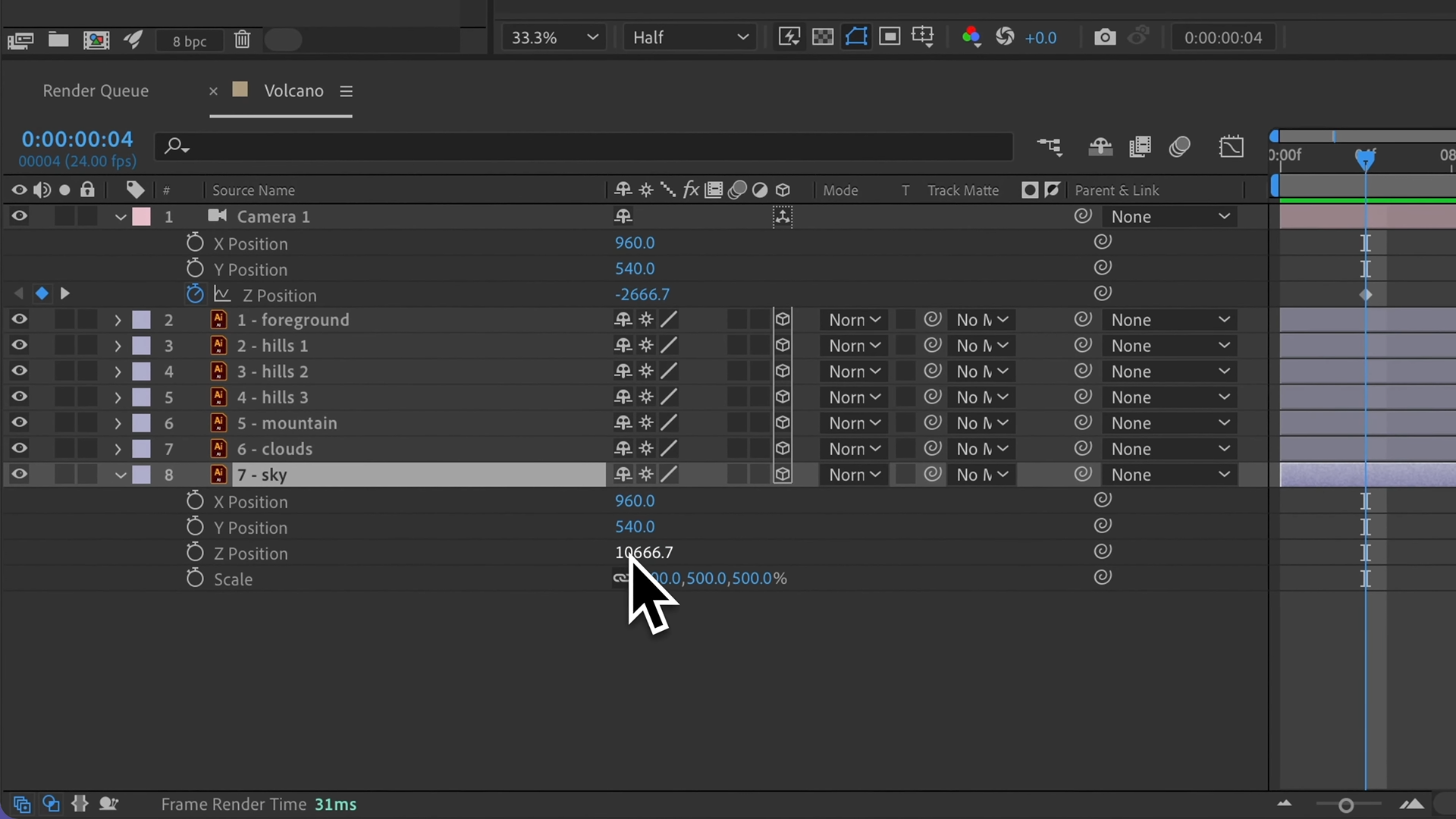 Parallax Effect یعنی تو بیای لایههای تصویر رو از هم جدا کنی، بعد با فاصلهٔ عمقی (محور Z) بچینیشون، و وقتی دوربین حرکت میکنه، این لایهها با سرعتهای مختلف جابهجا بشن. همین اختلاف سرعت = حس عمق.