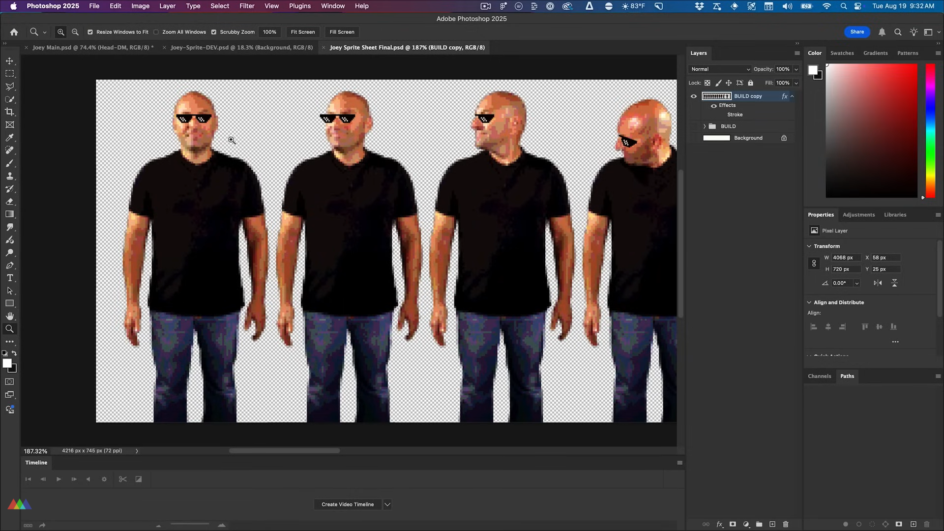 باید کاراکتر پیکسلی خودت رو به صورت تیکهتیکه و جدا از هم خروجی بگیری. مثلاً: