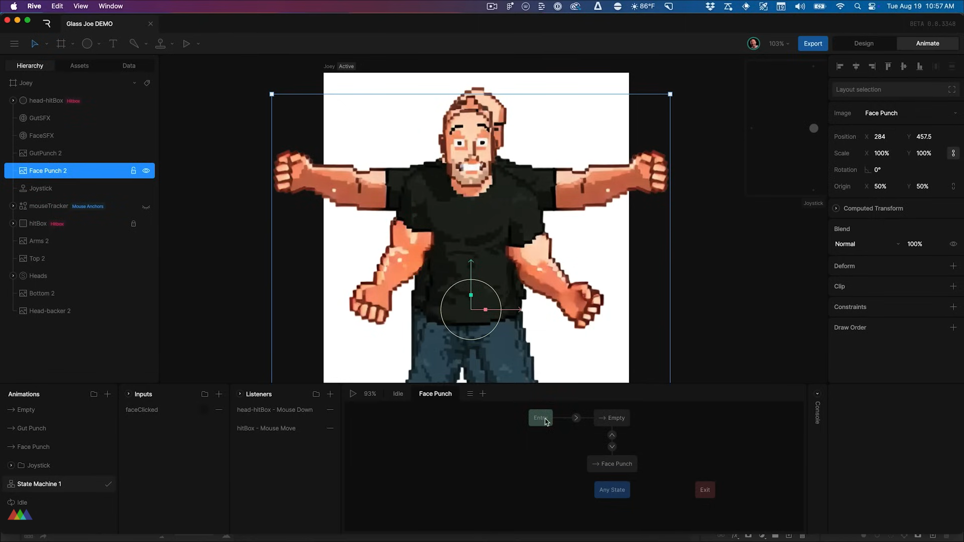 از ایده تا اجرا: طراحی کاراکتر پیکسلی قابل پانچ با Rive برای پرتفولیوی شخصی ✨