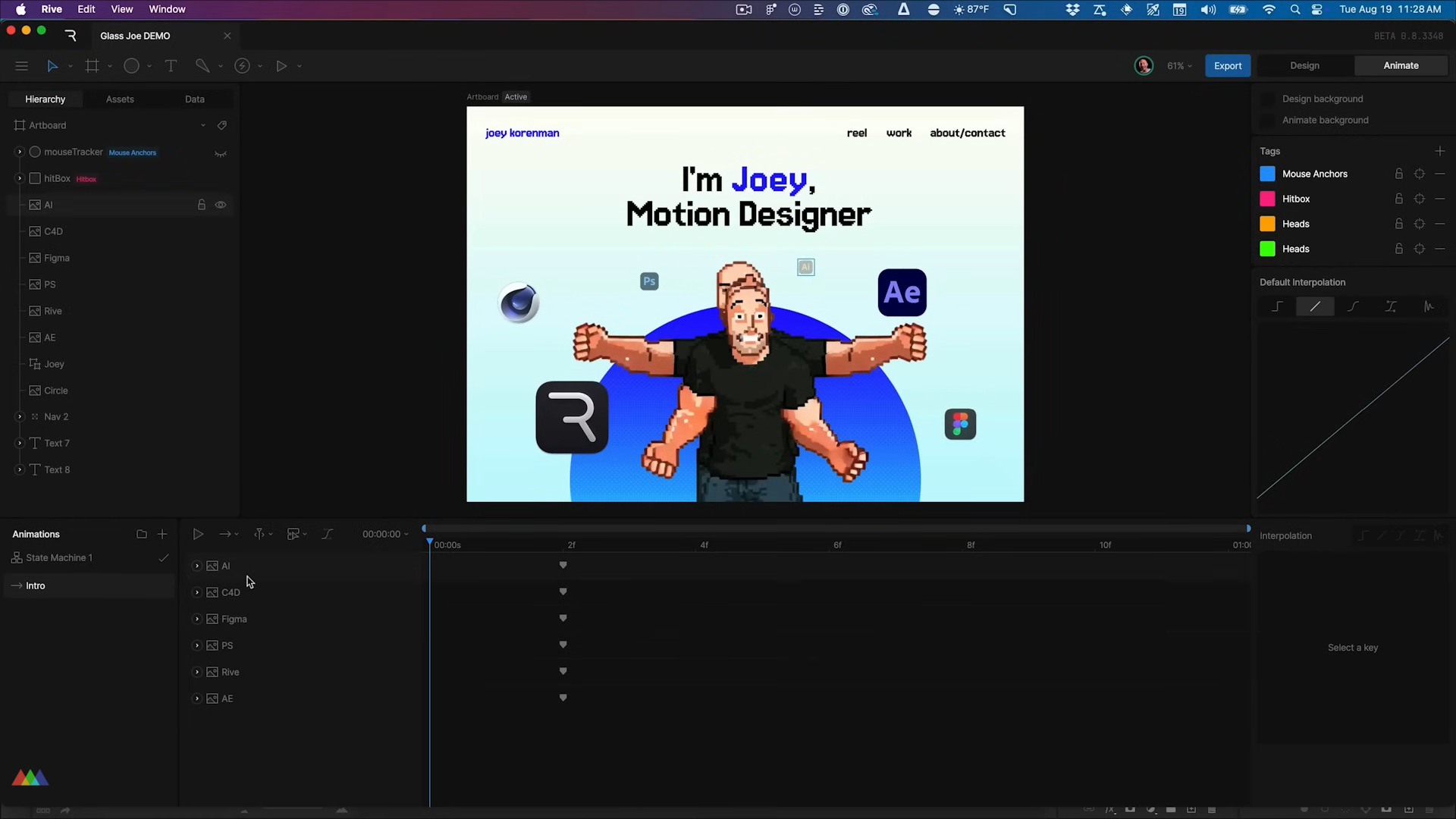 اینجا همون جایی هست که جادوی «Rive» اتفاق میافته! قراره به کاراکتر پیکسلی خودت زندگی بدی و کاری کنی که وقتی کاربر باهاش ور میره، واکنش نشون بده و انگار واقعاً بهش «پانچ» زده باشن.